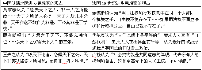 (1)根据材料一并结合所学知识分析,中国和法国进步思想家的主张有何共性?(3分)在内容与实质上有何不同?(12分)