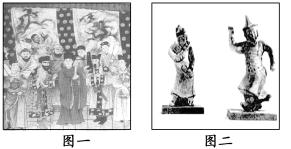 本题解析:分析题中图片,联系教材,首先图二中是教材中出现的元杂剧人物陶俑,再判断图一,从服饰看应该也是元朝人物,所以排除BCD三项,此题答案为A。