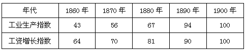 材料二 19世纪下半期英国工业生产与工资增长指数(1900年=100)