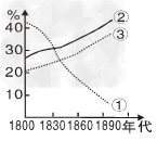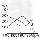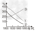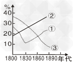 4、判断题  下面是历史学家统计的19世纪英国人口结构的变化图(注:图中①农民②工人③中产阶级),其中符合当时史实的是