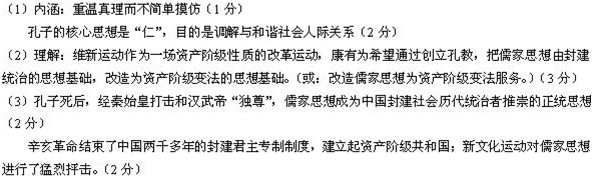 (1)根据材料一,说明孔子对古代传统重建的内涵;并回答孔子的核心思想及其欲达到的目的(3分)