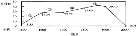 本题解析:从图中可知,②是17世纪,此时加紧殖民扩张的主要是荷兰、英国、法国等国,不包括美国,所以B不符合史实。