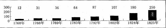 5、判断题 下图是美国学者查尔斯?金德尔伯格在《世界经济霸权1500-1990》一书中描绘的英国某时期申请专利数量的变化图。下列哪一现象与图中反映的专利数量变化存在因果关系