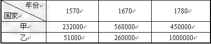 4、判断题 ?1570—1780年,欧洲国家商船的运载能力发生巨大变化。阅读下图(单位:吨)判断甲、乙两国分别是