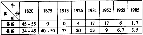 1820——1985年英美进口关税率(%)