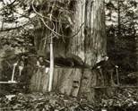材料四?工业革命的飞速发展是以迅速消灭森林为代价的。图中几位伐木工人正骄傲地炫耀即将被他们伐倒的巨树,这种场面在20世纪初仍被认为是人类的杰作。