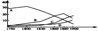 5、判断题 观察下图,四条曲线代表的是中国、英国、美国、德国四个国家的制造业产值其中C线代表的国家是
