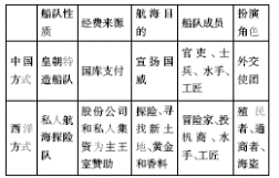 (3)结合材料二,从东西方航海方式的不同,说明我国明清时期的远航事业与西方相比由先进转为落后的原因。