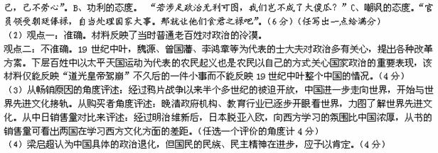 (2)这位外国人关于对当时中国人的政治态度的认识是否准确?请简单陈述理由(4分)