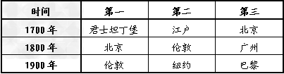 5、判断题  观察下列《世界三大城市》表格,从中可以获得的有效信息是: