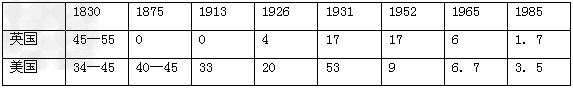 5、判断题 下表是1830—1985年英美进口关税率(%),下列关于英美关税变化原因的分析正确的是
