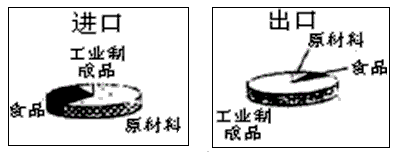 ? 材料二 1854~1856年间,英国进出口贸易中,三种类型商品所占份额图。