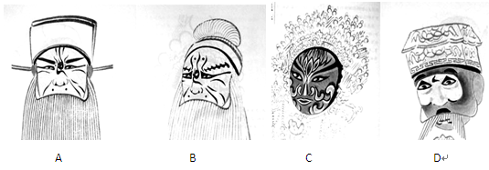 3、选择题 脸谱化”是中国京剧的一大特色,同时也深受中国传统思想文化影响,刘备被视为汉室传承者,而曹操则被视为篡汉者,视为“不忠”,在舞台上成为奸臣。下列脸谱为曹操的是( )