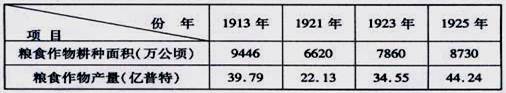 3、判断题 下表是苏俄新经济政策实施后,农业生产的恢复和发展情况,从中我们可以