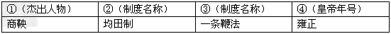 (2)本题主要考察对材料的分析理解能力。由材料“男子授露田40亩、桑田20亩;妇女授露田20亩,不授桑田”“死亡者或年满70岁后免课者,露田归还国家”“露田、麻田均不得买卖,桑田也限制买卖”可知是均田制,回答均田制的作用及结局。