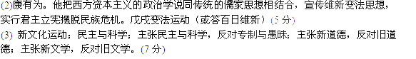 (2)“假使正在这个时代,我们中间出一个人提出一个伟大的方案,既合乎古训,又适宜时局,其文章是我们所佩服的,其论调正合乎我们的胃口,那我们还不拥护他吗? ”,联系康有为将西方政治文明与中国传统儒家思想相结合,掀起维新变法运动。