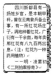 本题解析:①在材料中并没有说很多官员弃官经商,在当社会里,虽然商品经济繁荣,但是重农抑商和士农工商的观念仍在,官员们不可能弃官经商。②此乡绅只是在自己的庄子上种植红花出售,并没有说其存在资本主义生产过程中的“雇佣”关系,所以不能说明出现了资本主义萌芽。③是正确的,材料有助于我们了解某些乡宦的价值取向,既做官也经商。④有助于我们理解四川经济作物的种植情况,红花可以在四川生长,市场销量也好。选D。
