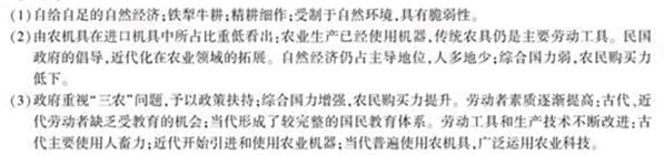 (2)指出材料二所显示的中国近代农业生产力状况,分析形成这一状况的主要原因。(10分)