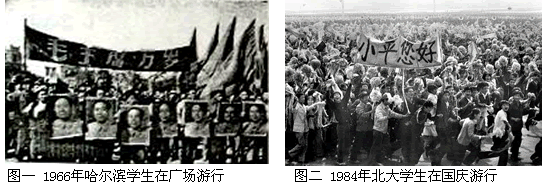 5、判断题 下列是在天安门广场拍摄的照片。解读两幅图中反映的历史信息,正确的是