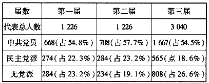 3、判断题 阅读下面前三届人大代表构成表关于表格中的内容表述正确的是