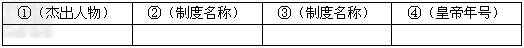 (1)阅读材料并结合所学知识,在下列图表中按要求填写材料中①②③④处的内容。