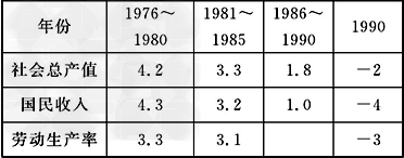 3、判断题 下表为1976~1990年苏联经济增长率(%)简表。其中,1990年经济发展出现负增长的原因是