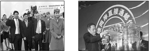 浅浅的台湾海峡,却似难以跨越的鸿沟天堑。两岸不知有多少?颗忧伤的心,日日夜夜被思念牵动摧折;又不知有多少远眺的眼,朝朝暮暮为亲情望穿秋水。这一切,终于在2008年12月15日化作历史。银燕展翅、百舸争流、鸿雁传书——随着两岸空运、海运直航和直接通邮的同步实施,“三通”终于在这一天从梦想变成了现实。