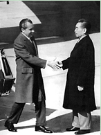 5、判断题 下图是一幅反映国际关系史上重大历史时刻的图片。观察图片,回答问题。在《尼克松回忆录》中,尼克松回顾道:“我知道,1954年在日内瓦会议时福斯特-杜勒斯拒绝同周恩来握手,使他深受侮辱……(1972年访问时)我走完阶梯时决心伸出我的手,一边向他走去。当我们的手相握时,一个时代结束了,另一个时代开始了。”
