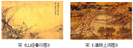 (2)透过材料二的图片,你获得了哪些有关宋代绘画特点的信息?分别体现了宋代怎样的社会风貌?(6分)