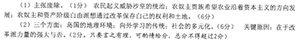 (3)第三问,材料中的“严禁结党、强诉(指人民的团结和向政府提出要求)”、“基督教被作为邪教而加以禁止等等”、“以谋求政令统一,建立中央集权国家”表明明治维新的政策具有封建闭性,是为日本的民族特色而制定的;“设议政(立法)、行政、刑法(司法)三官(权)”又表明日本的新政策又具有西方的近代特色,所以又具有开放性。