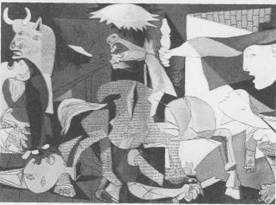 ②快节奏生活加剧了人们的紧张感,使人们不再满足于传统的艺术表现形式;③科学技术的发展拓展了艺术家认识世界的视野,他们开始用新的表现形式和艺术精神进行创作。3、特点:反对传统和理性,重视艺术家的主观感受和表现形式,艺术上更趋于极端化。艺术形式多样化。4、代表人物及代表作:毕加索[西班牙]:《格尔尼卡》