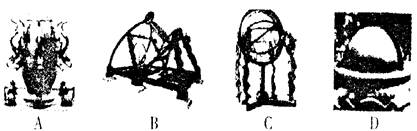 本题解析: 东汉张衡发明了地动仪(选项中的A图),可以遥测地震的方位.