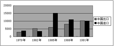 4、选择题 以下是1979~1991年的我国对日贸易(单位:百万美元)示意图,导致对日贸易变化的主要因素有