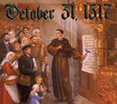 材料二:马丁·路德贴出《九十五条论纲》。(见下图)