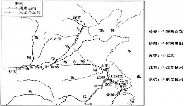 2、简答题 (8分)大运河是南水北调的重要通道。依据图12说明大运河的历史变迁。结合所学,说明大运河在中国历史上的重要作用。