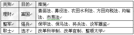 ①废井田?②奖励耕织?③废分封,行县制?④统一度量衡
