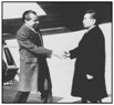 5、判断题 握手礼是当代世界大多数国家通行的见面礼?。以下握手的照片中不能反映外交礼仪的是