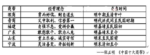 5、综合题 (16分) 改革开放的春风使中国商帮在沉寂100多年之后再度崛起。今日的浙商、苏商、粤商、闽商等比起传统的商帮更具开拓性、创新性,更具全球的眼光和谋略。抚今追昔,鉴古今而知未来。阅读材料,回答问题。