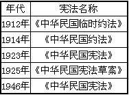 (4)阅读下表,划分中华民国修宪状况的主要分期。结合所学知识,任选一部处于新民主主义革命时间范围内的宪法,说明其形成的背景和废止的原因。