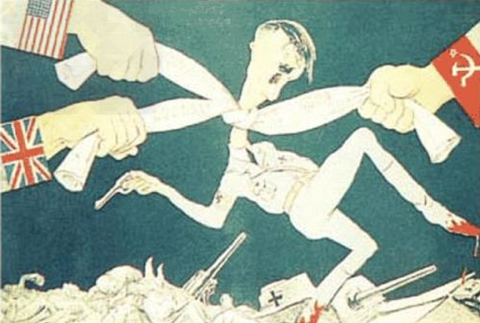 2、判断题 图1 是1942 年的一幅战争宣传海报,题名《绞死希特勒》。图中三只手代表着当时对德作战的主要三个国家,这“三国”是