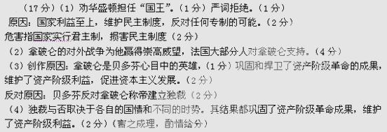 (4)就华盛顿和拿破仑对个人独裁表现出的不同态度,谈谈你的认识?(2分)