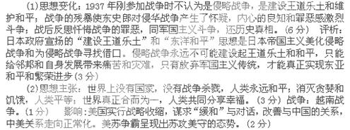 (1)根据材料一,指出东史郎思想的变化。根据材料一,并结合所学知识谈谈对日本宣扬的“建设王道乐土”、“东洋和平”思想的认识。(9分)