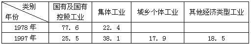此表反映了我国工业总产值中各种经济成分的变化。这一变化的主要原因是