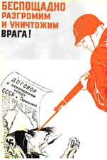 3、判断题  下图是一幅名为《该是对杀害两千多万苏联军民的罪魁祸首兴师问罪的时候了》的漫画。它创作于