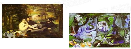 1、判断题 毕加索的晚年,尤其喜欢模仿过去古典大师的作品,然而不是单纯的模仿,更是一种变相的解读和重构,可以从另外一个崭新的角度重读那些经典的画作。最有名的例子是毕加索对莫奈的《草地上的午餐》的变奏仿制。(如下图)下列说法错误的是(?)