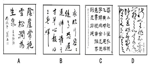 3、选择题 “狂僧挥翰狂且逸,独任天机摧格律。龙虎渐因点画生,雷霆却避锋芒疾。”与唐朝诗人窦冀描述相符的书法作品是