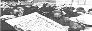 2、选择题 如图中的农民喜悦之情溢于言表,这是因为他即将