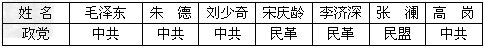 3、判断题 下表为第一届中华人民共和国中央人民政府主席、副主席的政党状况,下表说明?