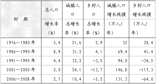 (3)根据上表,概括1976到2008年间江苏城乡人口增长趋势,结合所学知识简要说明其原因。