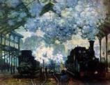 2、判断题 下图是1877年的一幅作品——《圣拉查尔火车站》。作者神往于光线穿过玻璃顶棚射向蒸气烟云的效果,神往于从混沌之中显现出来的机车和车厢的形状。这幅画属于